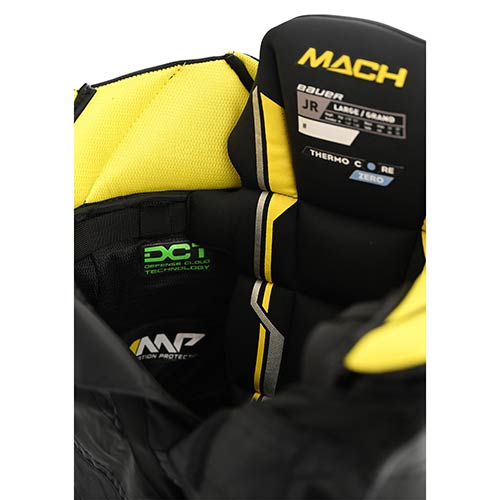 Die Bauer Supreme MACH Schutzhose kombiniert innovative Technologien und hochwertige Materialien, um sowohl Sicherheit als auch Komfort auf dem Eis zu gewährleisten.